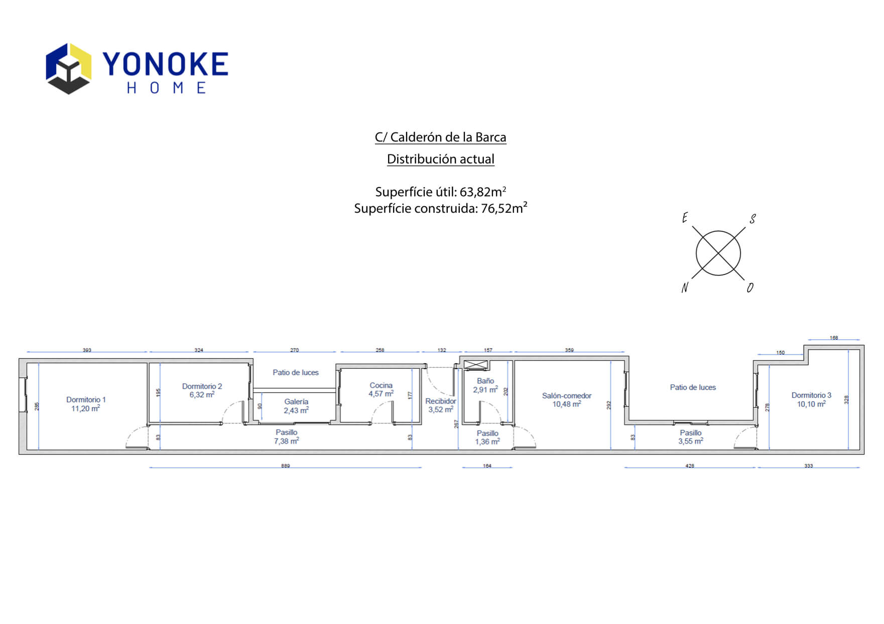 Disponemos de plano de distribución actual de la vivienda, con medidas tomadas «in situ».