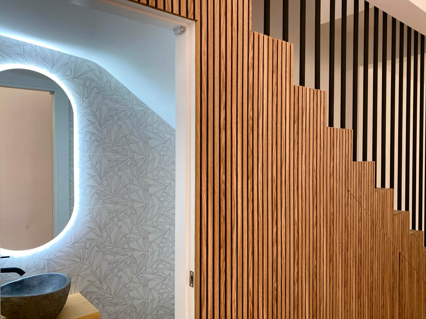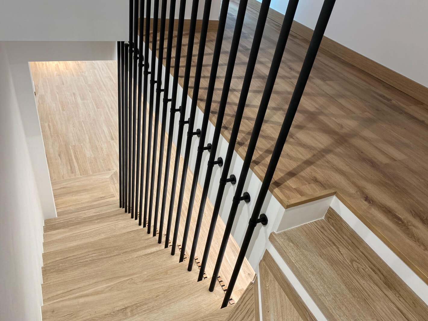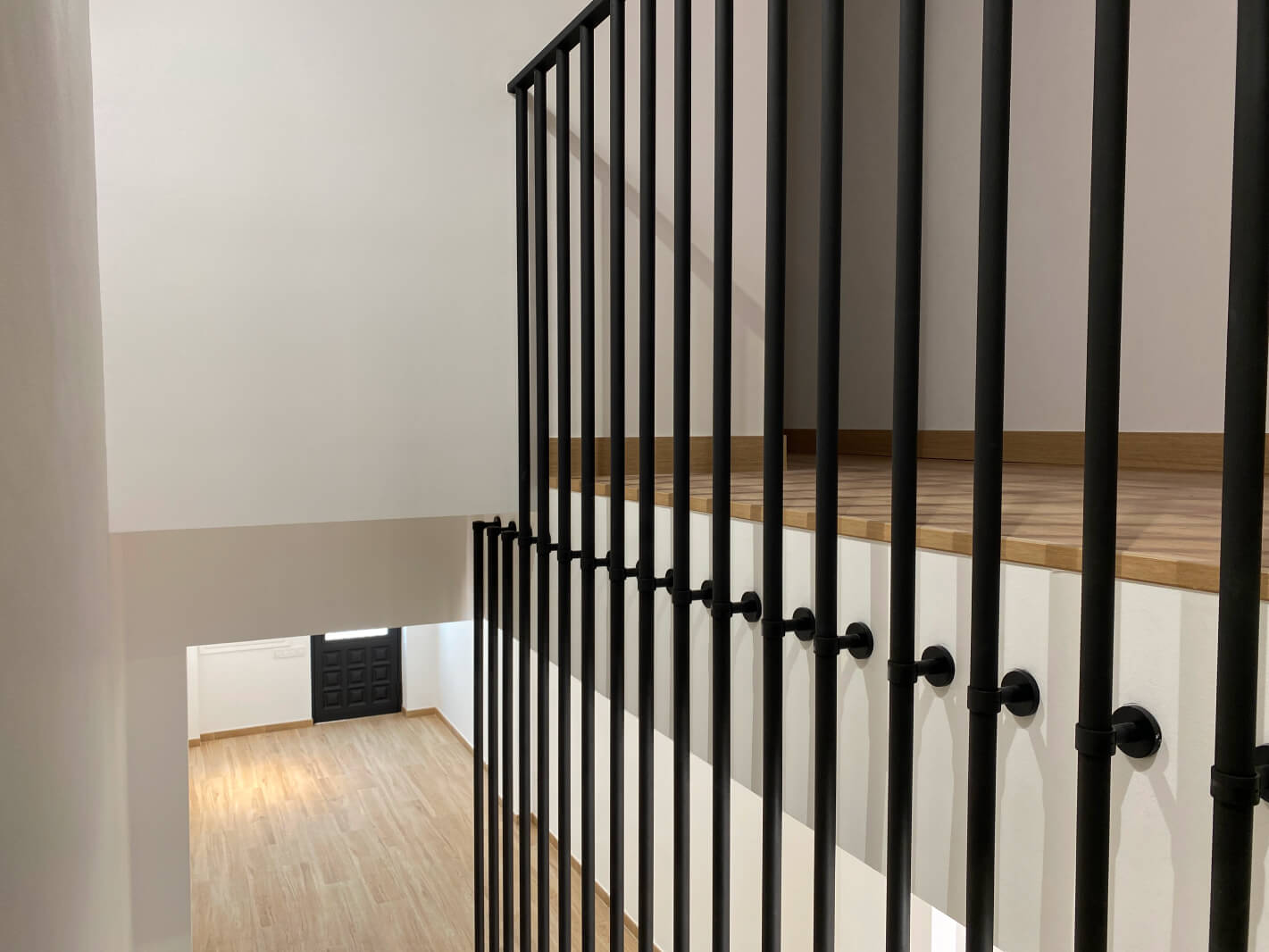 Zona de noche en planta primera: Dos dormitorios dobles exteriores (uno de ellos con salida a balcón), baño completo y una zona central de distribución que conecta mediante la escalera con la planta baja.